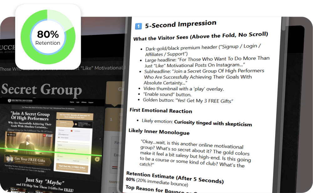 A vizuális útvonal szimulációnkkal másodpercről-másodpercre szimulálja a tölcséredet egy első alkalommal odalátogató szemszögéből, és azonosíthatod a lemorzsolódási pontokat, mielőtt elveszített eladásokba kerülnének.